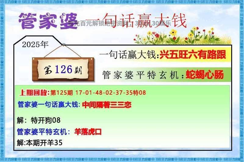 127期: 【财运亨通】【管家婆一句话赢大钱】财富永远都是给予那些善于抓住机遇的人!财富就是属于你的!